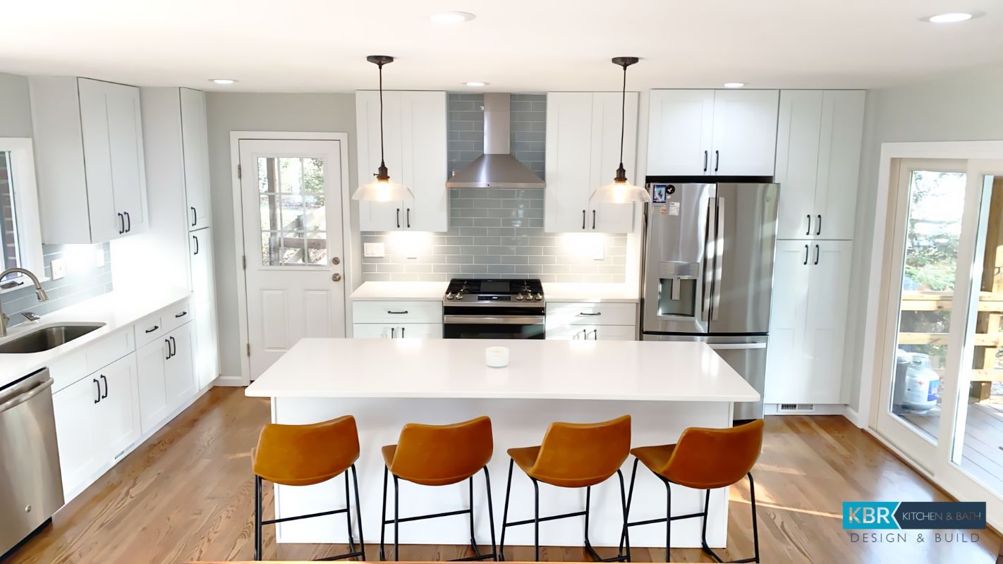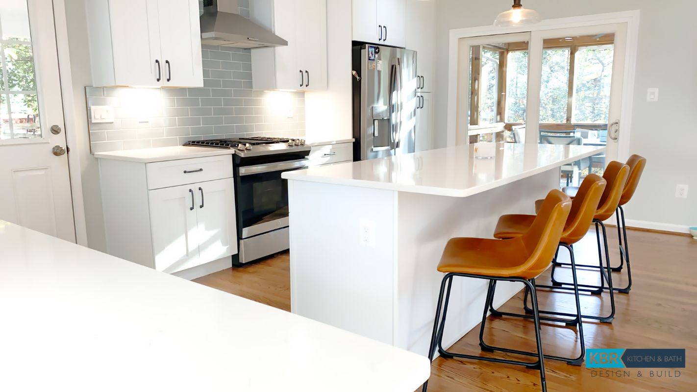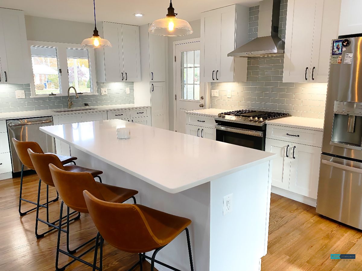 Bright White Kitchen Remodel with Seating Island