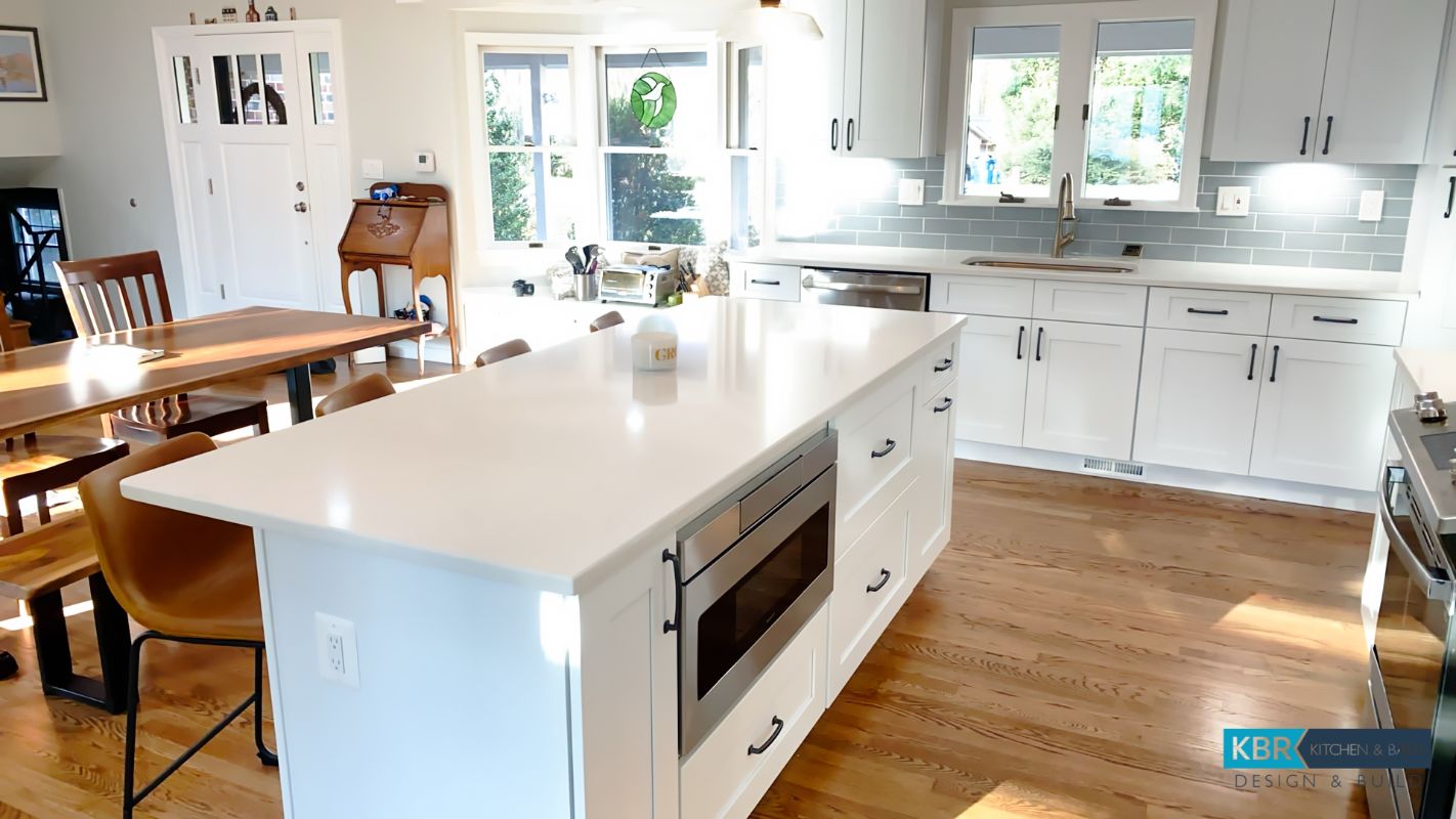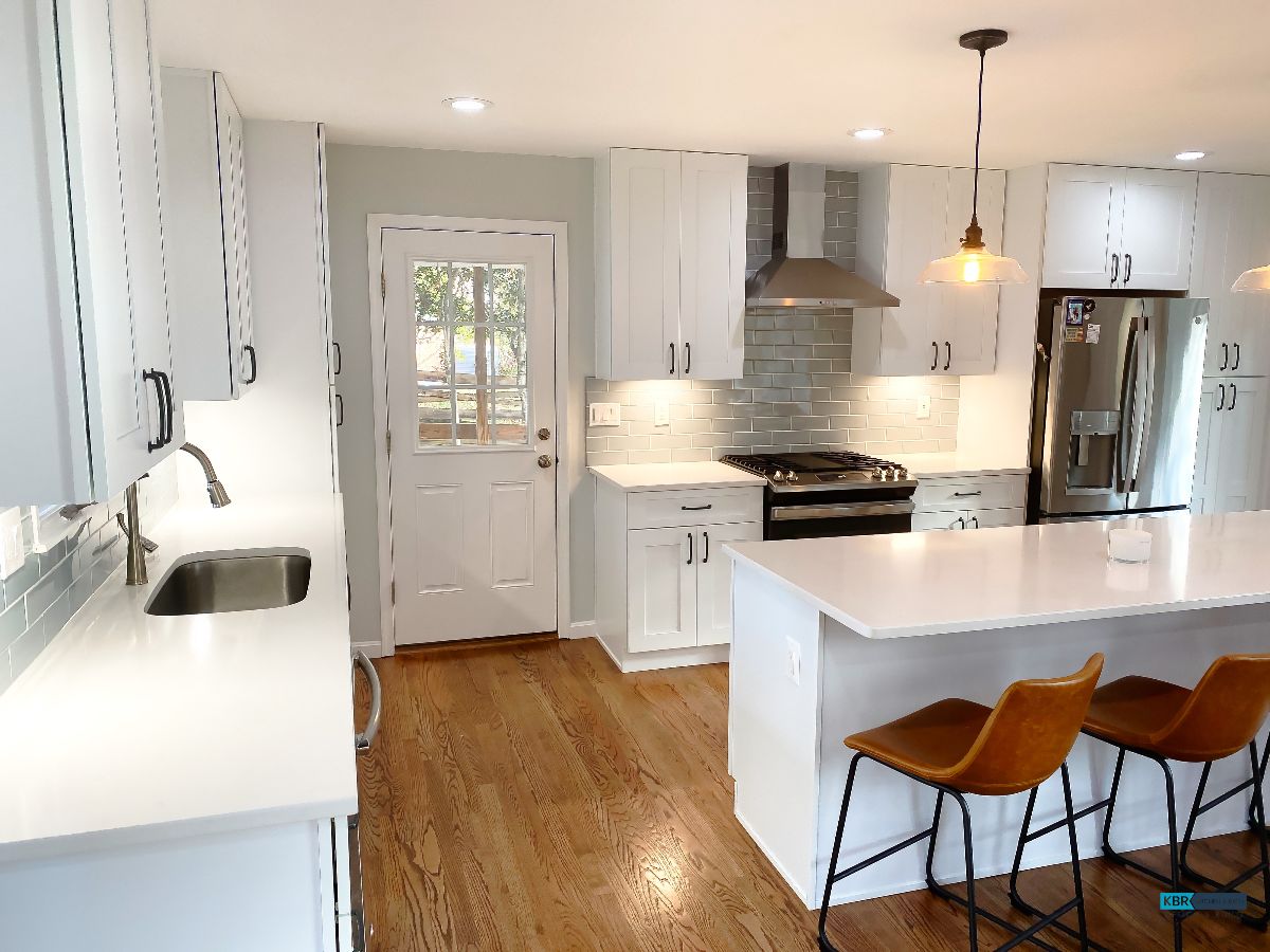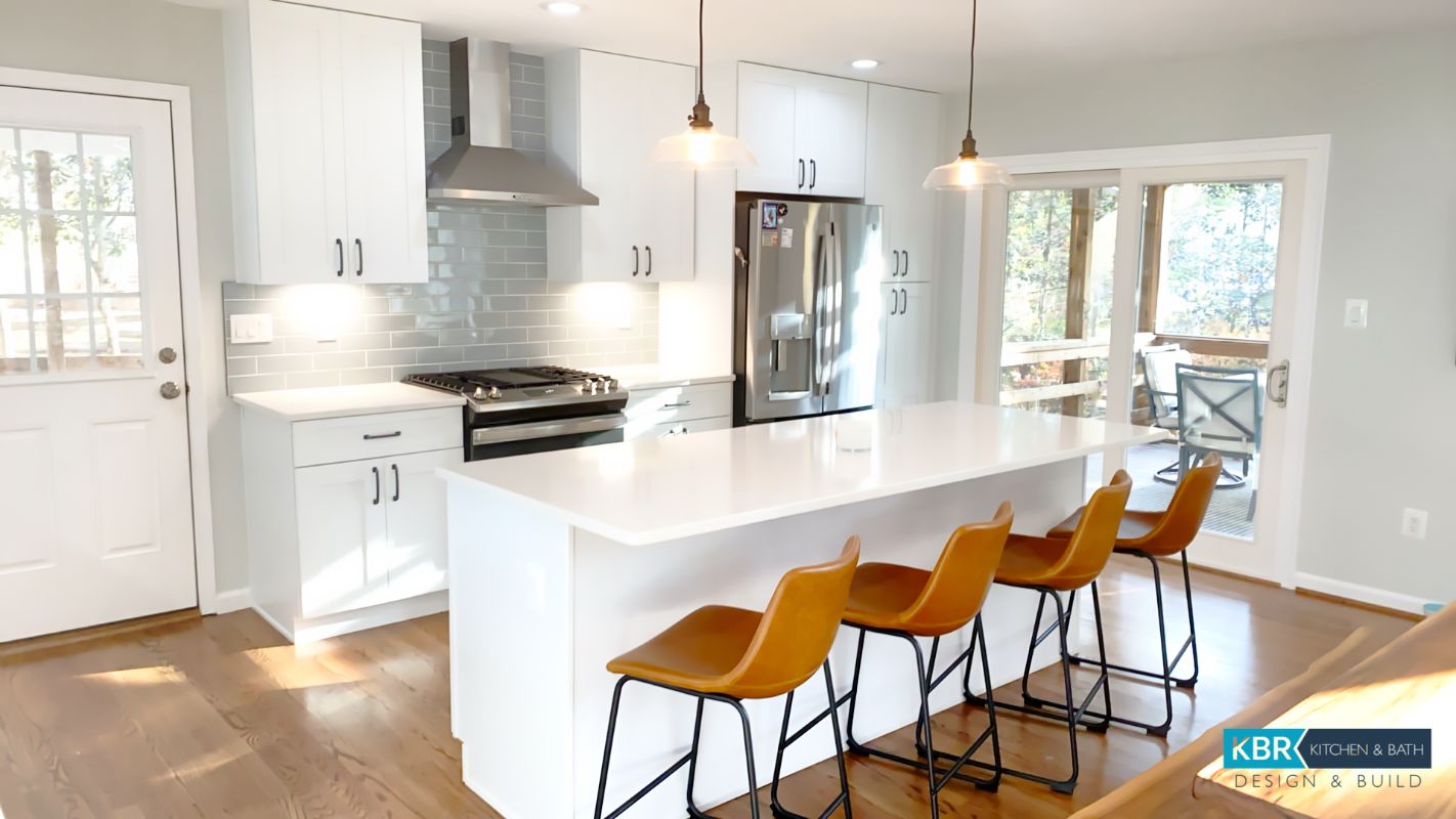 Bright White Kitchen Remodel with Seating Island